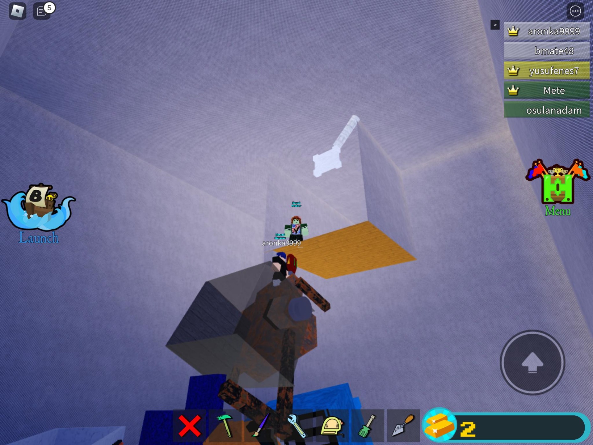 George felirat lett aronka9999 garázsánál, mert azt, hogy ,,aronka9999's garage" kihastegezte a Build a Boat.